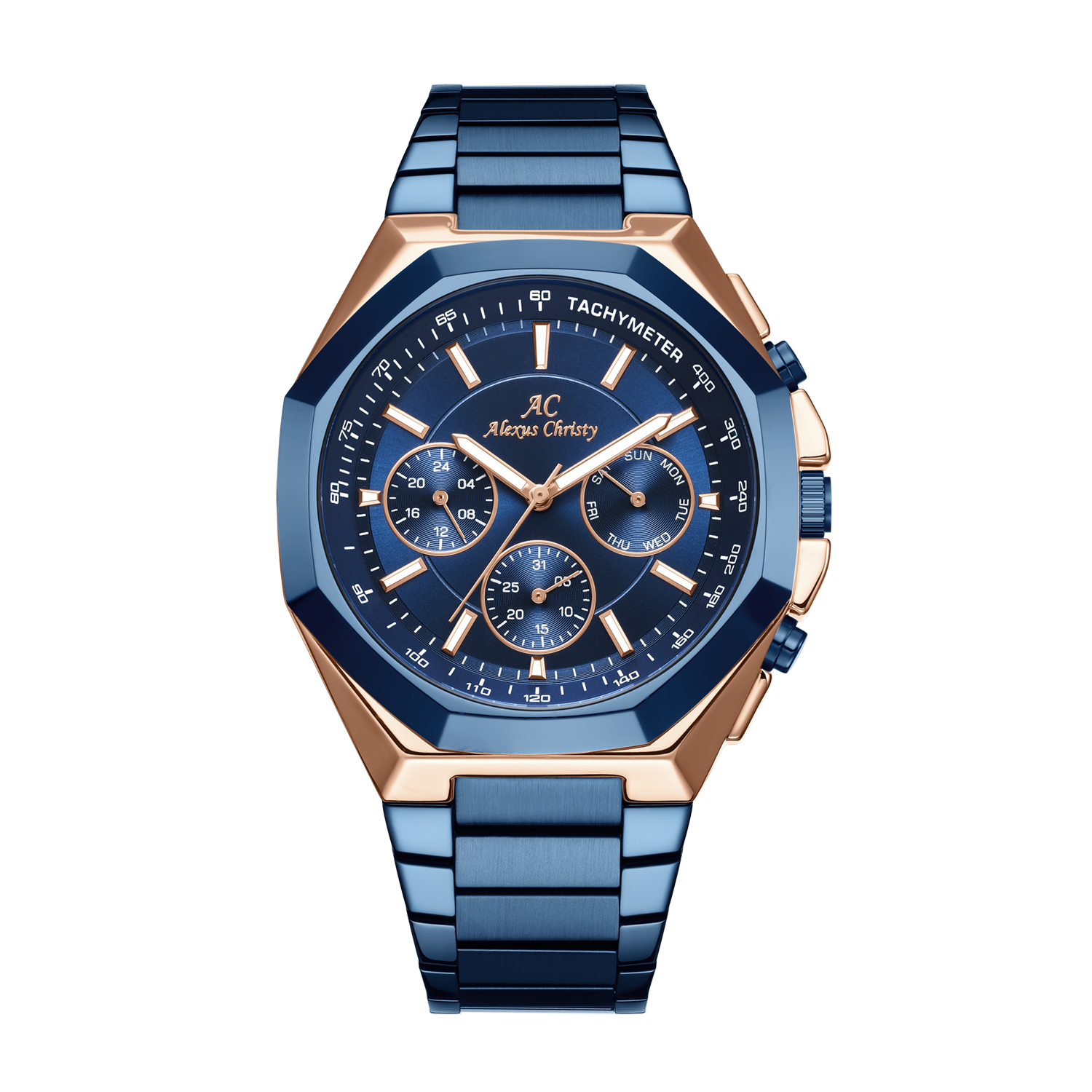 Command attention with quiet confidence in the Blue and Rose Gold Chronomaster Noble. The deep navy finish paired with rose gold accents creates a sharp contrast that stands out—without ever trying too hard. Sophisticated yet versatile, it's the perfect upgrade to your everyday wristwear.
