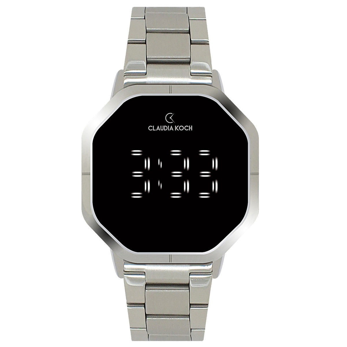 Digitaluhr aus Stahl in quadratischer Form