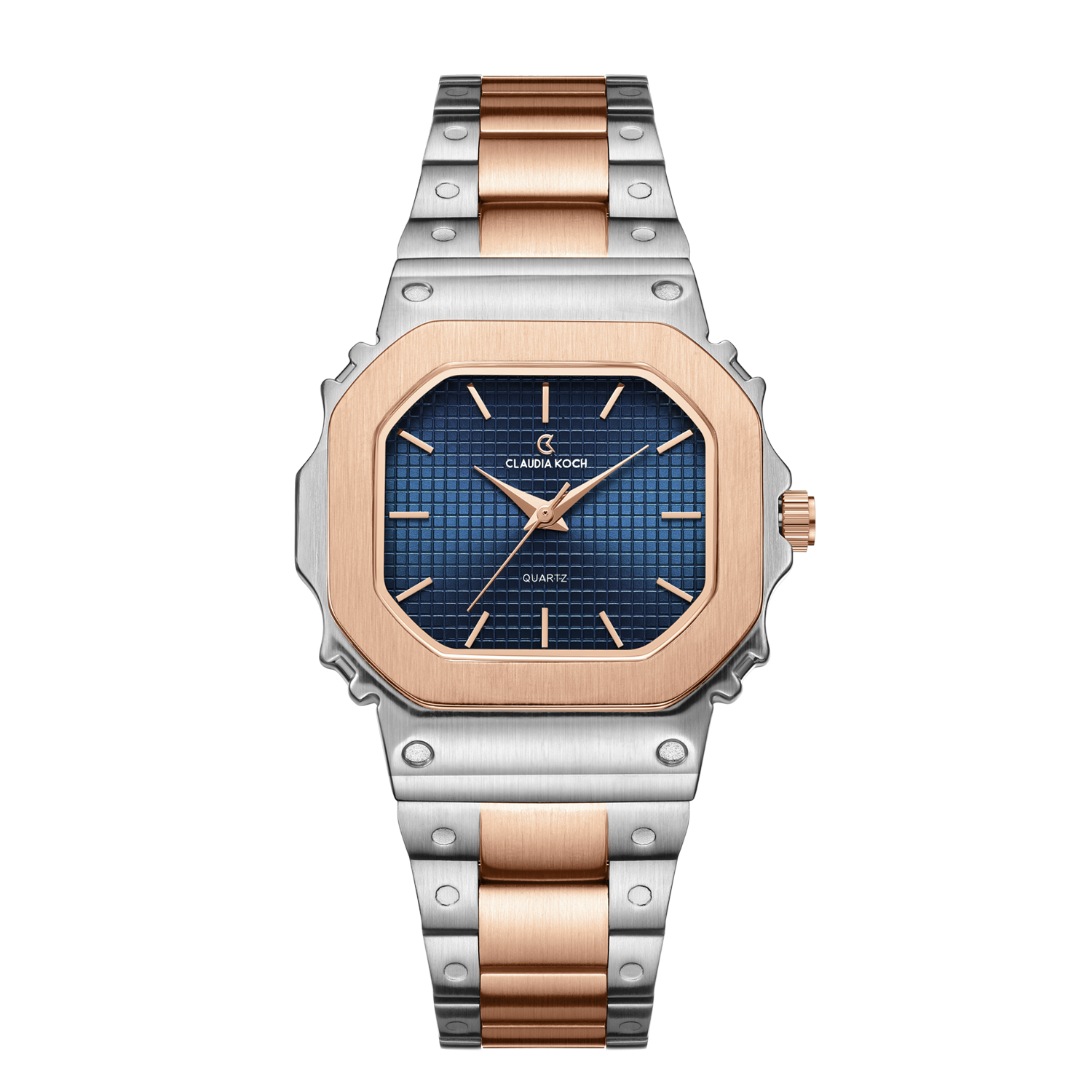 Elegant and expressive. The Frame in Rosegold, Silver, and Blue adds a touch of sophistication to your wrist with a color palette that speaks of confidence and style.