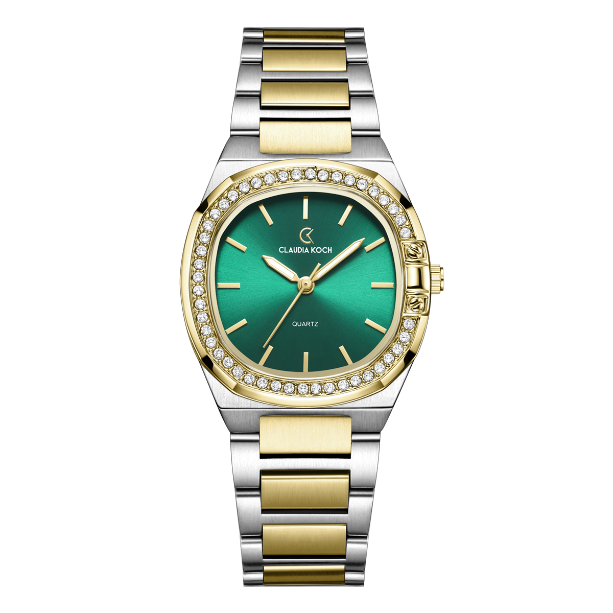 CK Aurora – Two-Tone Gold with Green Curved Square Dial & Stone Accents