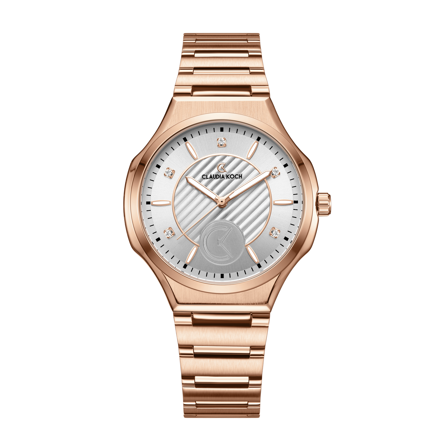 Modern femininity meets contrast. The Vela in Rosegold and Silver blends a polished rosegold steel finish with a soft silver dial, offering a refined, everyday statement that moves effortlessly between elegance and ease.