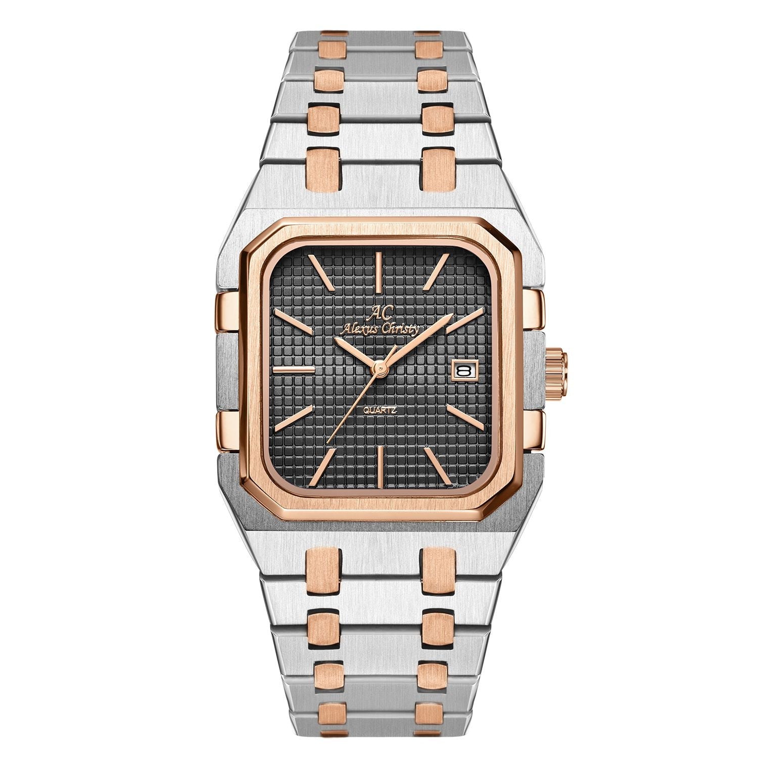 Two-tone silver and rose gold stainless steel