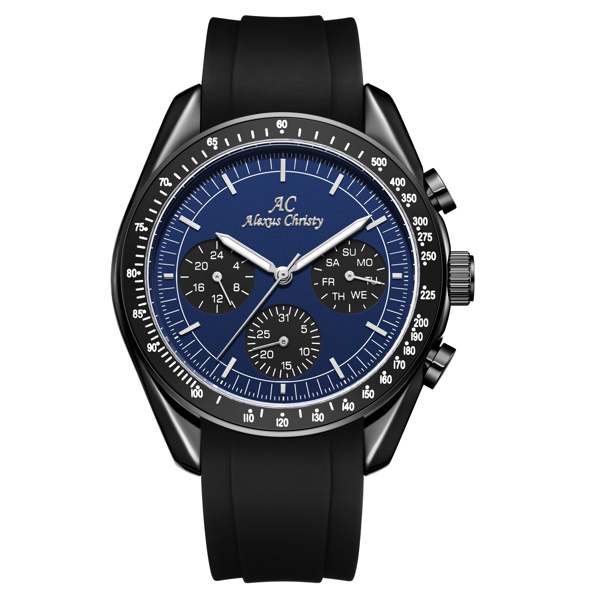 A deep blue dial housed in a black case creates a strong contrast for a confident look. The Circuit in Black and Blue is made for movement — and attention.