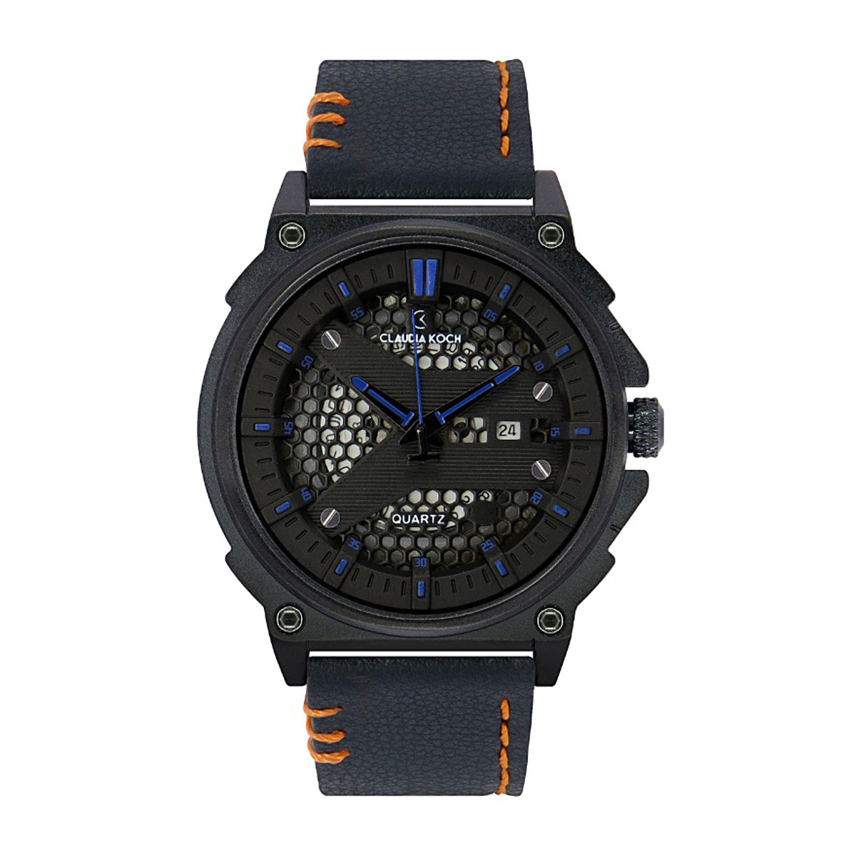 Introducing the ClaudiaKoch Men's Sporty Leather Watch, a dynamic fusion of fine leather craftsmanship designed to match the active lifestyle. Tailored for the contemporary man with an adventurous spirit, this timepiece seamlessly blends classic sophistication with innovative aesthetics. Elevate your athletic style with ClaudiaKoch, where the timeless elegance of leather converges with the precision of a chronograph, delivering a bold and sporty statement in modern watch design.