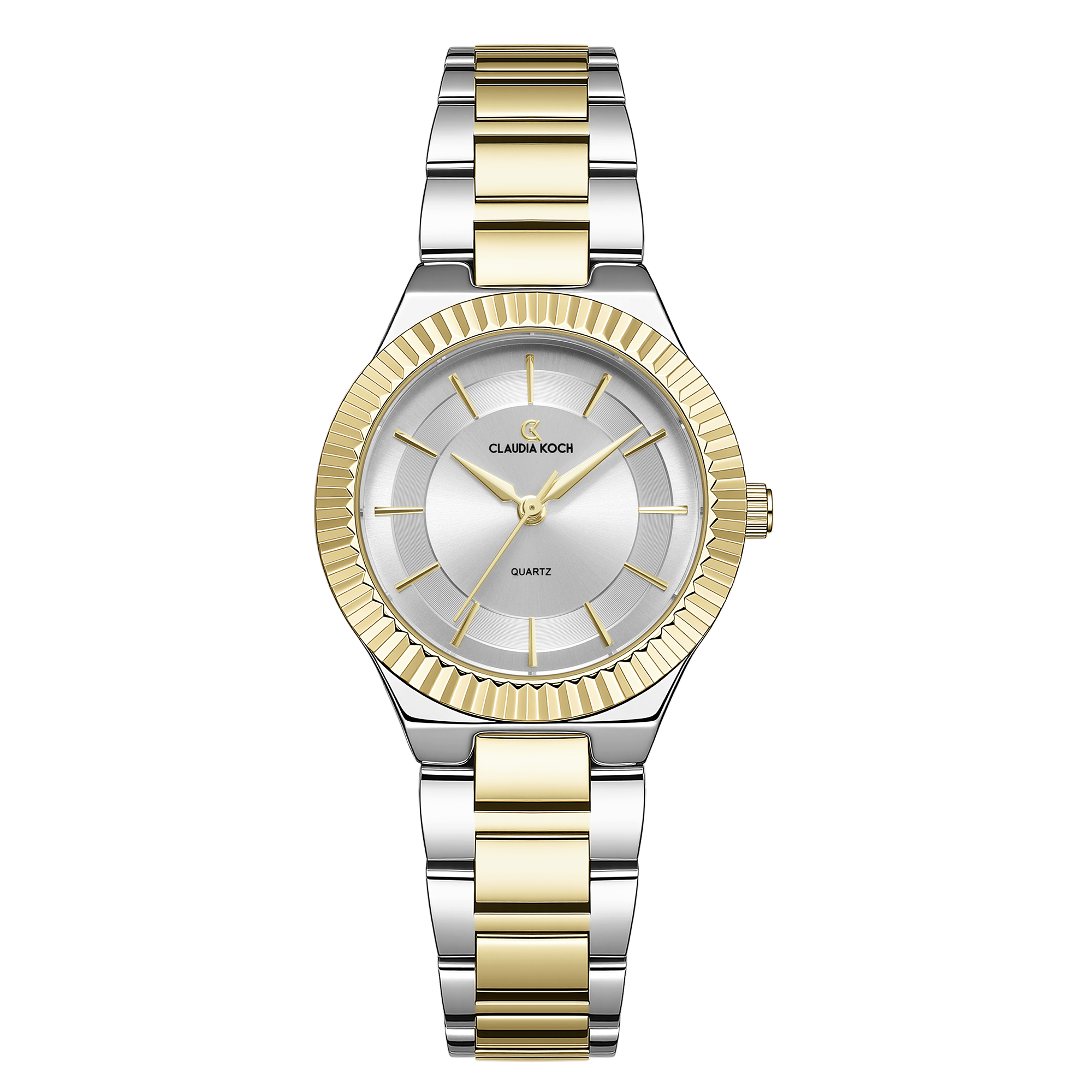 The CK Form in two-tone gold and silver with a green dial blends warmth and depth with classic structure. The green dial adds a natural richness, while the mixed metals allow effortless styling with any jewellery.