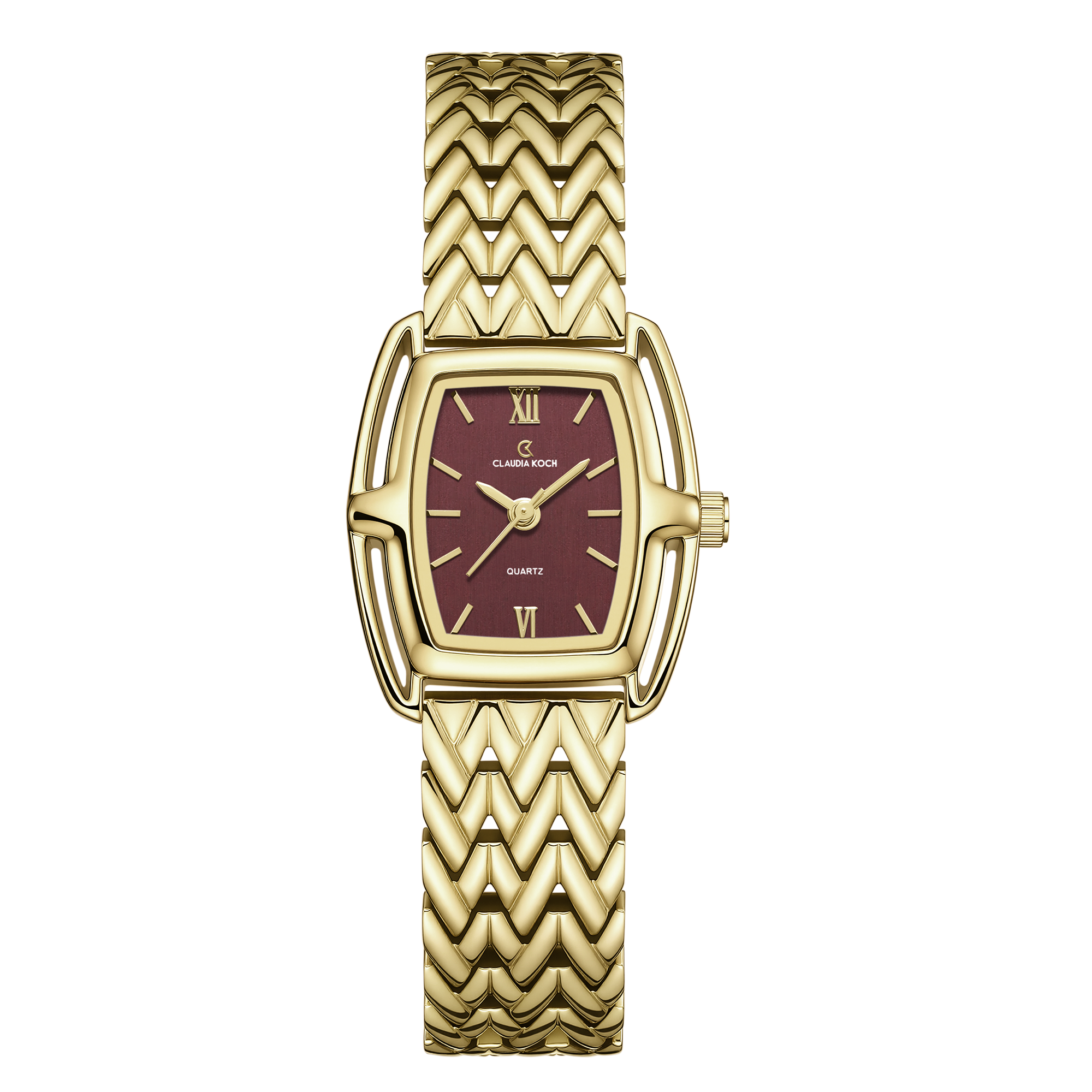 The CK Charm in gold with a burgundy dial offers a warm and refined take on classic elegance. The deep burgundy tone adds richness and character, beautifully complementing the polished gold bracelet.