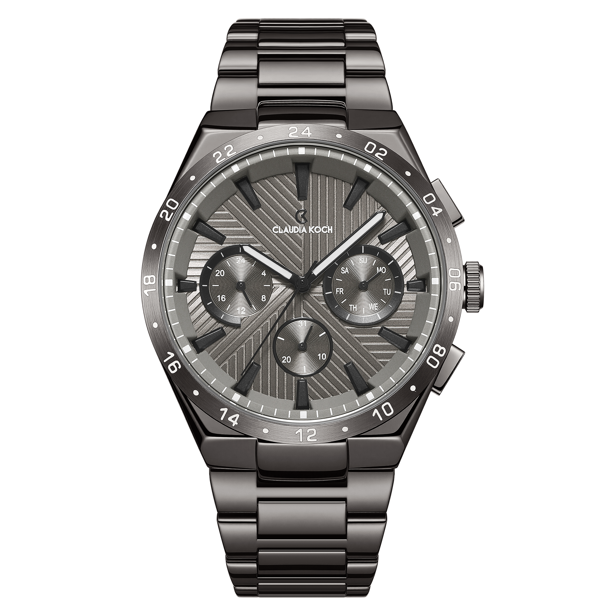 The CK Axis in full grey with grey dial offers a clean, understated take on modern sport elegance. The tonal grey face enhances the structured dial layout, creating a balanced and versatile design.